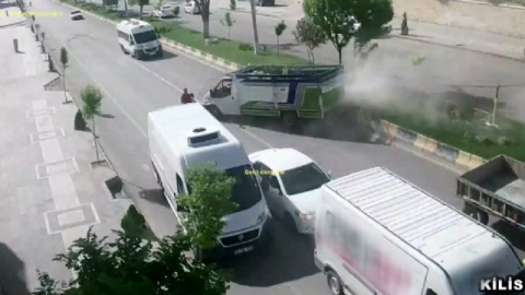 MOBESE kameralarına yansıyan görüntülerde, Kilis Beşeviler semtinde bir midibüs kontrolsüz kavşağa çıkması sonucu kamyonete çarptı. Çarpışmanın etkisiyle kontrolden çıkan kamyonet ise refüjden aşarak, karşı şeride geçti. Bu sırada karşı şeritte seyir eden motosiklet ise kamyonetin altında kalmaktan saniyeler ile kurtuldu.