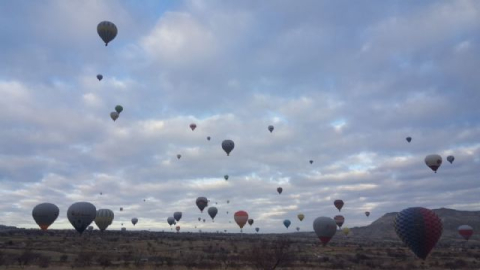 Türkiye'de ve dünyada balon turizminin başkenti olan Kapadokya'da olumsuz hava şartları nedeniyle, Sivil Havacılık Genel Müdürlüğü tarafından 5 gün boyunca iptal edilen balon turları bugün başladı. Yerli ve yabancı turistlerin büyük ilgi gösterdiği ve sabahın erken saatlerinde başlayan balon turu yaklaşık 1 saat devam etti.