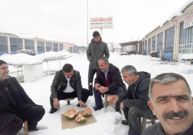 Genç Küçük Sanayi Sitesinde marangozluk yapan esnaflar, yaz aylarının vazgeçilmezleri arasında yer alan yerli karpuzu dükkanları içerisinde ki kepeğin içinde saklayarak kar yağışının yoğun olduğu dönemde çıkartıp gelen misafirlerine ikram ediyor. Sıcak yaz günlerinin serinletici meyvesi karpuzu kar yağarken yemenin ayrıcalığını yaşamak istediklerini söyleyen sanayi esnafı, "Yaz karpuzu gibi lezzetli olmasa da kış günü, kar altında karpuz yemek de varmış. Biz karpuzları yazın marangoz dükkanımızda ki talaşların arasında saklıyoruz. Kış geldiği zaman ise karpuzları çıkarıp gelen misafirlerimize kar üstünde ikram ediyoruz. Ama yine de her meyvenin kendi mevsiminde tadı oluyor" dedi.