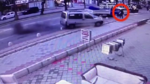 Adana'da kaldırımda yürüyen bir kadın yoldan çıkıp park halindeki araçlara çarpan hafif ticari aracın altında kalmaktan son anda kurtuldu. Kaza anı güvenlik kamerasına yansıdı. Edinilen bilgiye göre, Çukurova ilçesi Süleyman Demirel Bulvarı Yurt Mahallesi civarında ilerleyen bir hafif ticari araç, sürücüsünün direksiyon hakimiyetini kaybetmesiyle önce sağ tarafta park halindeki araçlara çarptı ardından da kaldırıma çıkarak durabildi. Bu sırada kaldırımda yürüyen bir kadın, hafif ticari aracın çarptığı ve hareket ettirdiği aracın daha sonra ise kamyonetin altında kalmaktan son anda kurtuldu. Kadın önce soğukkanlı dururken daha sonra olay yerinden koşarak kaçtı. Bu anlar çevredeki güvenlik kamerası tarafından görüntülendi. (Fatih Keçe - Serkan Çetinkaya /İHA)