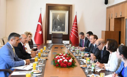 Cumhuriyet Halk Partisi Genel Başkanı Kemal Kılıçdaroğlu, Fransa Dışişleri Bakanı Jean Yves Le Drian ile bir araya geldi. Kılıçdaroğlu, TBMM'de Fransa Dışişleri Bakanı Drian ile görüştü. Görüşmede CHP Genel Başkan Yardımcısı Öztürk Yılmaz da hazır bulundu. Görüşmede Fransız Bakanın 'adalet yürüyüşü' dolayısıyla Kılıçdaroğlu'nu tebrik ettiği, ikilinin Türkiye ile AB arasındaki ilişkilerin durumundan bahsettiği belirtildi. Kılıçdaroğlu'nun da Fransız Bakana Türkiye AB arasındaki ilişkilerin düzeltilmesi yönündeki katkılarını anlattığı ifade edildi. 2019 yılına ilişkin CHP'nin hazırlıkları hakkında soru soran Fransa Dışişleri Bakanı Drian'a, Kılıçdaroğlu'nun 'hayır' bileşenlerinin bir arada tutulması ve güçlendirmesi konusunda çabaları anlattığı belirtildi.