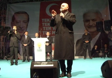 "Deniz Baykal gibi yaşını başını almış bir adam çıkıp ne dedi? Eğer hayır çıkarsa öyle sevineceğim ki düşmanı denize dökmüş gibi. Yazıklar olsun. Hakikaten yazıklar olsun. Hiç yakıştı mı? Hadi o onu söyledi. Ötekisi ne diyor? Ötekisi de diyor ki, Yunan nasıl İzmir'de denize döküldü ise bu evetçileri, Samsun'dan çıkarız, denize dökeriz diyor. Bunu CHP'li kardeşlerimize ne olursunuz anlatın. Biz Murat Karayılan'dan, Cemil Bayık denilen o alçaktan onlara uzak mıyız? Yazıklar olsun. CHP'li kardeşlerimiz elini vicdanına koysun. Biz onlardan uzak mıyız? Şimdi onlarla iş birliği yapıyorlar. Bu ülkede, evet Kılıçdaroğlu yapıyor, terör örgütünün değirmenine su taşıyor. Sonra bizi, bu ülkeyi işgal etmek, ezanlarımızı susturmak, namusumuza göz dikmek isteyen, topraklarımızı almak isteyen Yunan postalından bizi daha düşman görüyor kendisine. Ey Kılıçdaroğlu, bırak kıvırmayı, bir kere delikanlı ol be. Bir kere de ki, 'Ayıp, yanlış yaptın. Seni partiden ihraç ediyorum. Senin siyasette yerin yok' de. Eğer sen bunu yapmazsan, 16'sında bu millet sana öyle bir tokat atacak ki göreceksin ne olacağını."