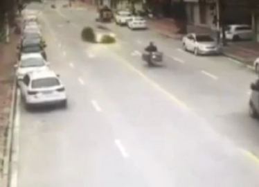 Görüntüler Çin'den. Sürücüsünün direksiyon hakimiyetini kaybettiği otomobil ters şeride girerek 2 motosiklete çarpıyor. Motosikletlerin sürücüleri çarpmanın etkisiyle savrulurken, otomobil de park halindeki araçlara çarparak takla atıyor. O anlar anbean güvenlik kamerasına yansıyor.