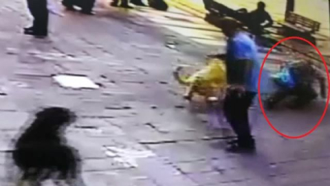 İstanbul Zeytinburnu'nda köpek korkusu olan esnaf önce arkadaşlarının yaptığı şaka, ardından da köpeklerin kovalamasıyla ne yapacağını şaşırdı. Köpeklerin kovaladığı şahıs ilk önce elindeki poşetleri düşürdü ardından yere düştü. İlginç görüntülerin oluştuğu o anlar güvenlik kamerasına yansıdı.