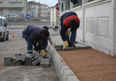 Körfez Belediyesi Fen İşleri Müdürlüğü ekipleri, ilçedeki kaldırımları yeniliyor.