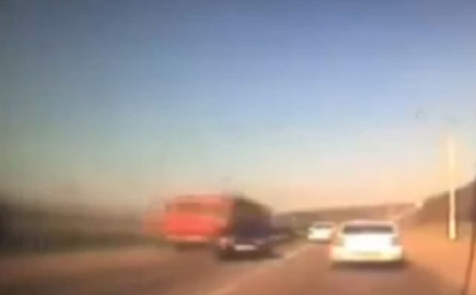 Araçlardan biri karşı şeritten gelen kamyona çarpmaktan son anda kurtulurken, arkasındaki araçsa zamanında şeridine giremiyor ve kaza da kaçınılmaz oluyor.