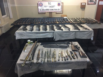 Bolu'nun Gerede ilçesinde bir ihbarı değerlendiren jandarma ekipleri köy evine baskın yaptı. Ev ve bir araçta yapılan aramada çok sayıda silah ile tüfek ele geçirildi. Edinilen bilgiye göre, bir istihbaratı değerlendiren Bolu İl Jandarma Komutanlığı ekipleri, savcılıktan aldığı izin ile Salur Köyünde M.K.'yı takibe aldı. Zanlının silahları piyasaya süreceğini öğrenen ekipler, köy evine baskın yaptı. M.K.'ya ait araçta ve evde yapılan amada 40 adet tüfek, 64 adet çeşitli marka silah, bıçak ve kılıçlar piyasaya sürmek istenirken başarılı operasyon ile yakalandı. Olay yerinde ekiplerin araması devam ediyor.