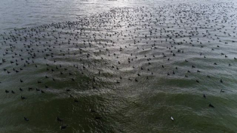Bursa'nın Gölyazı beldesi, çeşitli kuş türlerine ev sahipliği yapıyor. Uluabat Gölü'ndeki kuşlar drone ile havadan görüntülendi.