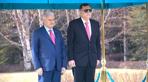 Başbakan Binali Yıldırım, Libya Başkanlık Konseyi Başkanı Fayez Al Sarraj'ı Çankaya Köşkü'nde düzenlenen resmi törenle karşıladı. İki ülkenin milli marşlarının okunmasının ardından Sarraj, tören kıtasını "Merhaba asker" diyerek selamladı. İki isim, daha sonra basın mensuplarına hatıra pozu verdi.