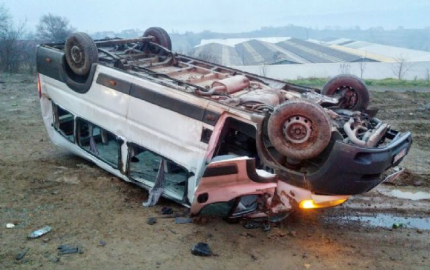Madencileri taşıyan minibüs takla attı: 12 yaralı