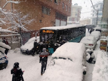 Maltepe'de yoğun kar yağışı nedeniyle yaşanan buzlanma sonucu bazı araçlar kayarak kaza yaptı. Kaza mahalline girmek istemeyen bir otobüs ise sokak arasına girince mahsur kaldı ve yaşanan bu olay üzerine vatandaşlar otobüsü kurtarmak için seferber oldu. İstanbul'da etkili olan yoğun kar yağışı Maltepe Fındıklı Mahallesi'nin ana caddesi olan Atatürk Caddesi'ni buz pistine çevirdi. Etkili olan kar nedeniyle yollar tamamen karla dolarken bazı araçlar kayarak kaza yaptı. Bir kamyonetle otomobilin karıştığı kazanın ardından trafik tamamen durdu. Bu sırada seferine devam etmek isteyen bir otobüs ise sokak arasına girdi ve kaymaya başladı. Otobüs iki tane araçta maddi hasara yol açarken hareket kabiliyetini kaybeden araç çaresiz kalınca vatandaşlar otobüsü kurtarmak için seferber oldu. Önce otobüsün çarptığı park halindeki aracı kaldırmaya çalışan vatandaşlar, otomobili biraz kaldırarak uzaklaştırdı. Daha sonra hareket eden otobüs yine kayarak otomobile çarpınca vatandaşlar bu kez otobüsü geri itmeye çalıştı. Vatandaşların tüm çabalarına rağmen kurtarılamayan otobüs sokakta terk edildi. Otobüsün şoförü, "Yukarıda kaza vardı. Buraya girdim. Her taraf berbat durumda gördüğünüz gibi" dedi. Öte yandan cadde üzerinde bulunan maddi hasarlı kazaya karışan araçlar ise vatandaşlar tarafından kaldırıldı. Bu sırada da araçların kaydığı ve tehlikeye davetiye çıkardığı görüldü. (Mustafa Esen /İHA)
