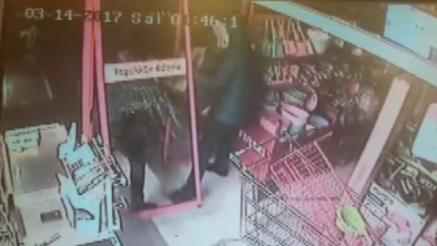 Hırsızlık anları markette bulunan güvenlik kameraları tarafından saniye saniye kaydedildi. Kameralara yansıyan görüntülerde 2 hırsız marketin önüne geliyor. Hırsızlardan bir tanesi tekme atarak kapıyı kırıyor. Ardından tekme atan şahıs içeri girerken diğeri ise hem kırık kapıyı tutuyor hem de gözcülük yapıyor. Bu sırada içeride olan şahıs boş kasayı yerinden sökerek alıyor. Hırsızlar daha sonra kayıplara karışıyor.