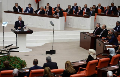"ÜZÜLEREK İFADE EDEYİM Kİ, BUGÜN TBMM BÜYÜK BİR İTİBAR KAYBINA UĞRAMIŞTIR" "TBMM köklü geçmişine, kurucu değerlerine sahip çıkmak yerine meclisi fesih yetkisini bir kişiye, üstelik hiçbir gerekçe göstermeden verilmesini istemiştir" ifadelerini kullanan Kılıçdaroğlu, "Bu anlayış milli irade üzerine düşen en büyük gölgedir ve milli iradenin reddidir. Tarih milletin egemenliğini bir şahsa teslim etmenin yolunu açan milletvekillerini elbette ve asla unutmayacaktır. Sayın Başkan, Sayın Cumhurbaşkanı yurt dışına çıktığında veya görevinden geçici olarak ayrıldığında ona zatıaliniz vekalet ediyordu. Çünkü siz seçimle gelen milletvekilisiniz. TBMM Başkanlığına da seçimle geliyorsunuz. Milli iradenin kalbi olan TBMM'yi temsil ediyorsunuz. Aynı zamanda tüm parti gruplarına karşı da tarafsızlığınızı korumak zorundasınız. Üzülerek ifade edeyim ki, yeni tek adam rejiminde siz Sayın Cumhurbaşkanına vekalet edemeyeceksiniz. Daha acı olanı ise Sayın Cumhurbaşkanına vekaleti seçimle gelen bir kişi değil, atamayla gelen bir başkan yardımcısı yapacaktır. Bizim tarihimizde bu durum darbe dönemlerine uygun bir uygulamadır. Bu acı gerçeğin bu geriye gidişinde unutulmaması gerekir. Bu Meclis kuruluşunda liyakata dayalı bir devlet yönetiminin Türkiye'nin bekası açısından ne kadar önemli olduğunu bilen bir Meclistir. Devlette liyakat sisteminin kurallarını keyfi uygulamalara yol açmaması açısından hep bu Meclis belirlemiştir. Yürütme organı da bugüne kadar bu kuralları esas alarak atama yapmıştır. Şimdi üzerine YSK tarafından şaibe düşürülen mühürsüz seçimle bu yetki de TBMM'nin elinden alınmıştır. Böylece devlet yönetiminde liyakat değil keyfi yönetim anlayışının egemen olmasının yolu açılmıştır. Üzülerek ifade edeyim ki bugün TBMM büyük bir itibar kaybına uğramıştır. Yetkileri alınmıştır. YSK dahi TBMM'nin çıkardığı kanuna uymamayı kural edinmekte, kanunsuzluğu meşru hale getirmektedir. Bir parlamentonun bu duruma düşmesi gerçekten de çok dramatik bir tablodur. Bu Meclisi yaralayan, milli iradeyi sakatlayan bir başka gerçekte uygulanan yüzde 10 seçim barajıdır. Yüzde 10 seçim barajı milli egemenliği hiçe sayan yurttaşlarımızın tercihlerini görmezden gelerek temsiliyet haklarını çalan ve iktidarda kalmak için her şeyi reva gören çarpık bir zihniyetin ürünüdür. Darbecilerin getirdiği bu düzenlemeyi savunanların darbecilerle aynı paralelde olduklarını da unutmamak gerekir" şeklinde konuştu.