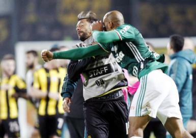 Galatasaray'ın eski futbolcularından Felipe Melo, Penarol maçında rakibine yumruk atınca ortalık karıştı.