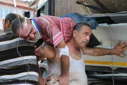 Zonguldak'ta 22 ton mermer yüklü tır, geri manevra yaptığı esnada halat koptu. Dorsede mermerlerle birlikte seyahat eden 45 yaşındaki Mehmet Şen'in ayakları mermerlerin altında kaldı. Adeta enkaz anının yaşandığı olay yerindeki yaralı, mermerin forklift ile kaldırılması üzerine sıkıştığı yerden kurtarıldı.