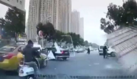 Görüntülerin Adresi Çin. Şiddetli rüzgar nedeniyle çatıdan kopan metal plaka, sıkışan trafikte duran bir motosikletliye çarpıyor. Talihsiz sürücü yaralanırken kaza araç kamerasına yansıyor.