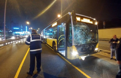 Merter'de bariyerleri aşarak metrobüse kaçak binmeye çalışan gence metrobüs çarptı. Genç yaralanırken, metrobüsün içinde bulunan vatandaşlar da ani frenden dolayı aracın içinde savrularak hafif yaralandı. Kaza nedeniyle Avcılar yönüne metrobüs seferlerinde aksamalar meydana geldi. Olay, Merter metrobüs durağı yakınında saat 21.30 sıralarında meydana geldi. Edinilen bilgiye göre, metrobüse kaçak binmek isteyen 20'li yaşlarda bir erkek şahıs, E-5 yan yolda akan trafiği geçip bariyerleri aştıktan sonra metrobüs yoluna girdi. Kendisini metrobüs yoluna atan şahsa durağa gitmeye çalışan 34 AS numaralı Söğütlüçeşme-Avcılar seferini yapan metrobüs çarptı. Çarpmanın etkisiyle metrobüs yoluna savrulan genç olay yerine çağrılan ambulansla Bezmiâlem Vakıf Üniversitesi Tıp Fakültesi Hastanesine kaldırıldı. Hastaneye kaldırılan gencin vücudunun çeşitli yerlerinde kırıkların olduğu ve durumunun ciddiyetini koruduğu öğrenildi. Kazada araçtaki yolcular da büyük panik yaşadı. Ani fren yapan metrobüs içerisinde savrularak hafif yaralanan yolcular, olay yerine gelen sağlık ekipleri tarafından ayakta tedavi edildikten sonra kontrol amaçlı çevredeki en yakın hastaneye kaldırıldı. Kaza sebebiyle Avcılar istikametinde metrobüs seferlerinde kısa süreli aksamalar oluştu. Kazada hafif yaralanan bir vatandaş, "Her şey bir anda oldu, birden birisi yola girince önce fren oldu, sonra bizler de araç içinde öne savrulduk. Ben aracın içindeydim ama olay nasıl oldu görmedim" dedi. (Ufuk Kıvık /İHA)