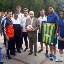 Kulüp yöneticileri, teknik heyet ve oyuncularla bir süre sohbet eden Bahçeli, ziyaretin sonunda takımla hatıra fotoğrafı çektirdi.