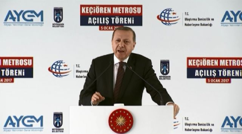 İstanbul'daki terör saldırısının milletin birliğine yönelik olduğunu belirten Cumhurbaşkanı Erdoğan, "Milletimizi birbirine düşüremeyecekler, kardeşliğimizi bozamadılar, bozamayacaklar" dedi. Cumhurbaşkanı Erdoğan, Keçiören Metrosu Açılış Töreni'ne katıldı. Keçiören Belediyesi önünde düzenlenen törene, Başbakan Binali Yıldırım, Ulaştırma Denizcilik ve Haberleşme Bakanı Ahmet Arslan, Ankara Büyükşehir Belediye Başkanı Melih Gökçek, Keçiören Belediye Başkanı Mustafa Ak ve çok sayıda vatandaş katıldı. Burada vatandaşlara seslenen Cumhurbaşkanı Erdoğan, "Keçiören metrosu hattının ülkemize, şehrimize, ilçemize, milletimize hayırlı olmasını diliyorum. Bir milyar TL yatırım bedeli olan ve 9 bin 220 metre uzunluğa, 9 istasyona sahip bu metro ile Keçiören ilçemizde yaşanan trafik sıkıntımızın önemli ölçüde çözüme kavuşacağına inanıyorum. Yaklaşık 11 yıl Keçiören de ikamet etmiş bir kardeşiniz olarak, metronun inşası sürecinde yaşadığınız sıkıntıları yakından biliyorum. Sabrın sonu selamettir. Hem biraz geç hem de biraz güç olan bu projenin bitirilmiş olmasını en az sizin kadar sevinçle karşıladığımı belirtmek istiyorum" diye konuştu.