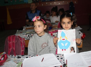 Adana'da PKK yandaşları tarafından sık sık korsan gösterilerin yapıldığı mahalledeki bir devlet okulunda okuma-yazmayı öğrenen birinci sınıf öğrencileri, terör bölgesinde görev yapan polis ve askerlere yazdıkları mektup ve hazırladıkları videoyu meslektaşlarına ulaştırmaları için polislere teslim etti. Öğrencilerin anlamlı etkinliği sınıf öğretmeninin okuma yazmayı öğrenen ilk öğrencisinin hayatini gerçekleştirme sözü vermesiyle ortaya çıktı. Seyhan ilçesine bağlı Şakirpaşa Mahallesinde bulunan Milli Mensucat İlkokulu 1-D sınıf öğretmeni İlknur Derendeli, okuma-yazmayı ilk öğrenen öğrencinin hayalini gerçekleştireceğini sözünü verdi. Bir süre sonra 7 yaşındaki Zehra Çiftçi okuma-yazmayı öğrendi. Öğretmen Derendeli, Çiftçi'ye hayalinin ne olduğunu sorunca Çiftçi, "Kuzey Kıbrıs Türk Cumhuriyeti'nde ağabeyim Velad Çiftçi askerlik yapıyor, ona mektup yazmak istiyorum" dedi. Zehra Çiftçi'nin bu talebi üzerine diğer öğrenciler de asker ve polislere mektup yazmak istediğini söyleyince sınıf öğretmeni Derendeli, "Minik Kalplerden Aslan Yüreklere Selam Var" isimli proje hazırladı. Proje kapsamında 24 öğrenci okuma yazmayı öğrendikçe asker ya da polise mektup yazdı. Öğrenciler ayrıca, kendileri çekip kendileri şiirler okuyarak asker ve polisler için bir de klip hazırladı. 24 öğrencinin mektubu tamamlanınca sınıf öğretmeni bunu Toplum Destekli Polislik Şube Müdürlüğü polisleriyle paylaştı. Polisler de öğretmen ve öğrencilerin bu davranışından dolayı duygulanarak mektupları bizzat teslim alıp Doğu ve Güneydoğu Anadolu'daki asker ve polislere gönderme sözü verdi. Sınıf öğretmeni Derendeli, "Projemizin amacı Güneydoğu'da görev yapmakta olan asker ve polislerimize moral vermek kalbimizle, dualarımızla her zaman onların yanında olduğumuzu göstermek istedik. Bulunduğumuz yer Şakirpaşa Mahallesi, genellikle ismini duyduklarında insanların tereddüt ettikleri bir mahalle ama buradan da böyle güzel şeylerin çıkacağını göstermek istedik" dedi. Derendeli, şöyle devam etti: "Bir sürü askerimiz, polisimiz var. Hepsine moral olsun dedim birlikte böyle bir etkinliğe giriştik. Bütün öğrencilerimiz mektup yazdı. Projemizin adı 'Minik kalplerin aslan yüreklere selamı var' oldu. Öğrencilerimizin hepsi duygu dolu mektuplar yazdı." Projeye hayali ile hayat veren Zehra Çiftçi adlı minik öğrenci de asker ağabeylerini çok sevdiğini belirterek, "Ben asker ağabeylerimi çok seviyorum onlar bizim için savaşıyorlar onun için mektup yazdım. Mektubumda asker ağabeylerim sizi çok seviyorum dedim. Onlar beni izlerse asker ve polis ağabeylerim sizleri çok seviyorum" diye konuştu. Polis kıyafeti giyen Taha Yüksekdağ ise, "Sevgili asker ve polis ağabeylerim sizler bu ülkeyi koruduğunuz için sizlere çok teşekkür ediyorum dedim. Polis kıyafeti de giydim bende polis olmak istiyorum" dedi. Burak Yıldızhan da polis ağabeylerini çok sevdiğini polis ve askerlerin kendilerini düşmanlardan koruduğunu belirterek şiir okudu. Adana Emniyet Müdürü Çocuk Şube Müdürü Oktay Nergiz, çocukların yazdığı mektupları asker ve polislere ulaştırmak üzere alarak, "Öncelikle biz burada çok duygulu anlar yaşadık. Bedenleri küçücük olmasına karşın kocaman yürekleriyle memleketin her köşesinde kendisi gibi arkadaşları anasız, babasız, öğretmensiz kalmasın her şeyden önce vatansız kalmasın diye bu arkadaşlarımız gerektiğinde canı pahasına kendi çocuklarından, ailelerinden uzak kalarak gecesini gündüzüne katarak görev yapan kahraman polislerimize ve askerlerimize bir nebzede olsun moral motivasyon amacıyla hazırlamış oldukları sunumları burada izledik hem sayın Emniyet Müdürümüz adına hem de teşkilatımız adına çok teşekkür ediyorum" şeklinde konuştu. Mektup ve videoyu alan polisler okuldan ayrıldı. Öğrencilerde polisleri kalplerden yaptıkları "sizi çok seviyoruz" yazısıyla uğurladı. (Fatih Keçe-Serkan Çetinkaya/İHA)