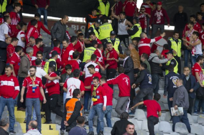 TFF 1. Lig'in 8. haftasında MKE Ankaragücü ile Boluspor arasında oynanan maçın ilk dakikalarında Boluspor taraftarı kendi aralarında kavga etti. TFF 1. Lig 8. hafta müsabakasında MKE Ankaragücü evinde Boluspor'u konuk ediyor. Maçım ilk dakikalarında Boluspor taraftarının olduğu bölümde kavga çıktı. Olaya hemen güvenlik güçleri müdahale etti. Olaya karışan bir kaç Boluspor taraftarı göz altına alındı. (Seyid Fatih Poyraz - Ömer Çetin / İHA)