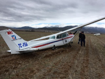 Isparta'da bir eğitim uçağı motor arızası nedeniyle tarlaya zorunlu iniş yaptı.
