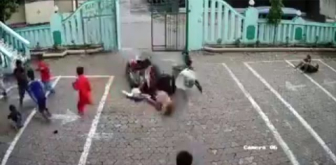 Pakistan'da kontrolden çıkan motosiklet, okula girdi, 4 kişi yaralandı. Okul bahçesinde oynayan çocukların arasına dalan motosiklet devrilirken, üzerindeki 3 kişi ve 1 öğrenci yere yuvarlandı. Olayda motosikletteki 2 kişi ile öğrenci hafif, sürücü ise ağır şekilde yaralandı. O anlarsa okul bahçesindeki güvenlik kamerasına yansıdı.