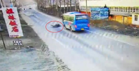 Çin'de motosiklet otobüsün altında kaldı. Olayda 2 kişi öldü.