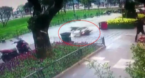 İstanbul Kartal'da devrilen bir motosiklet sürüklendi. Park alanındaki demir bariyerlere çarparak durabilen motosikletlinin ölümden döndüğü o anlar saniye saniye güvenlik kamerasına yansıdı.