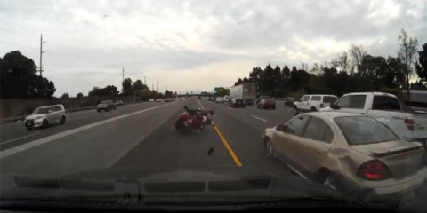 ABD'nin California eyaletinde otoyolda meydana gelen feci kaza kameraya yansıdı. Hızla ilerleyen bir motosiklet, şerit değiştiren otomobile çarptı. Çarpmanın etkisiyle motosiklet kontrolden çıktı ve devrildi. Motosiklet de sürücü de metrelerce sürüklendi. Kazada sürücü ağır şekilde yaralandı. Hemen çevredekilerin yardımına koştuğu şahıs, çağrılan ambulansla hastaneye kaldırıldı.