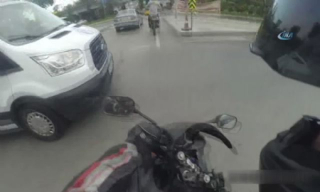 İstanbul Fatih'te önündeki motosiklet sürücüsünün yola çıkmasına aldanan motosikletli, hızla yola çıkınca kamyonete çarptı. Motosiklet sürücüsü kazayı şans eseri yara almadan atlatırken, kaza kask kamerasına saniye saniye yansıdı. Edinilen bilgilere göre kaza, geçtiğimiz gün meydana geldi. Ara sokakta seyir haline olan bir motosikletli genç ana yola çıkacağı sırada önündeki motosikletlinin de ana yola hızla girmesine aldanarak, hızla yola girdi. Dikkatsiz davranıp gaza basan sürücü ana yolda seyir halindeki kamyonete çarptı. Çarpmanın etkisiyle yere düşen sürücünün yardımına çarptığı araçta ve çevrede bulunan vatandaşlar koştu. Kazayı burnu bile kanamadan atlatan genç, çevredeki vatandaşlar ve çarptığı araçtaki kişilerin yardımıyla yere devrilen motosikletini kaldırıp, yoluna devam etti. Yaşanan o anlar kask kamerası tarafından saniye saniye kaydedildi. Görüntülerde, ana yol çıkışına geldiğinde aniden gaza basan motosikletlinin, seyir halindeki araca çarptığı görülüyor. Çarpmanın etkisiyle motosiklet yere devriliyor. Daha sonra çevredeki vatandaşlar ve çarptığı aracın içerisinde bulunan kişilerin yardım ettiği görülüyor. Bu sırada motosikletli genç, kendisine yardım edenlere, "Önümdeki motosikleti geçince ben de geçeyim dedim. Ondan kaza yaptım" dedi. Gencin, devrilen motosikleti yardıma gelen kişilerle birlikte kaldırıp, yoluna devam ettiği görülüyor.