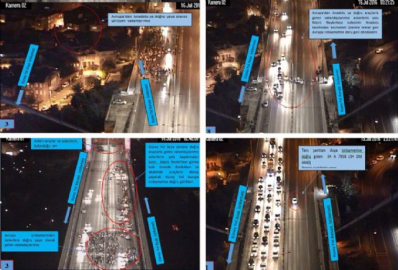 Görüntülerde, şüphelilerin 15 Temmuz şehitler köprüsünün Anadolu yakasından Avrupa yakasına geçiş istikametini Kuleli Askeri Lisesinden geldiği tespit edilen 2 adet Ünimog tipi askeri araç ve 44 şüphelinin kestiği, Anadolu istikameti yönüne araç trafiğinin açık olduğu ancak yoğun trafik nedeniyle araçların hareket edemediği görülüyor.