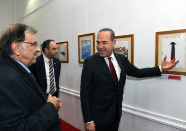 Konuşmaların ardından Aydın Doğan Vakfı Temsilcisi İlhan Atar, protokol üyelerine Aydın Doğan Vakfı 33. Uluslararası Karikatür Yarışması Yapıtları Sergisi'nin kitapçığını armağan etti. Başkan Sözlü, izlenime sunulun karikatürleri dikkatle inceleyip, İlhan Atar'dan bilgiler aldı.