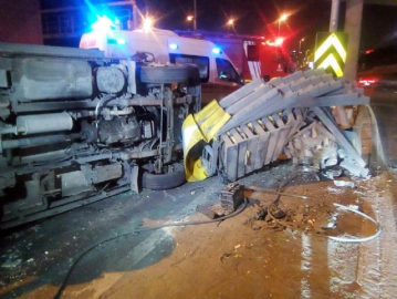 Okmeydanı D-100 karayolunda bariyerlere çarparak devrilen kamyonete bir otomobilin çarpması sonucu 2 kişi yaralandı.