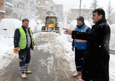 Bursa'da şiddetini artıran kar yağışı ile birlikte teyakkuza geçen Osmangazi Belediyesi, yolların ulaşıma kapanmaması hummalı bir şekilde çalışıyor. Ekiplerin çalışmalarını yerinde denetleyen Başkan Mustafa Dündar, "300'ü temizlik, 180'i de fen işleri olmak üzere toplam 480 kişilik ekibimiz kar kürüme araçları, kepçe, greyderin yanı sıra, çarşı ve sokaklarda küreklerle karla mücadele çalışmalarımızı 24 saat kesintisiz şekilde sürdür" dedi.