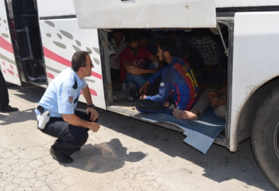 BAGAJDAN BİLE GÖÇMEN ÇIKTI Sungurlu Emniyet Müdürlüğü ekiplerinin kontrol noktasında durdurdukları ve trafikten men edildiği öğrenilen otobüsün her tarafından kaçak göçmen çıktı. Bazı kaçak göçmenlerin otobüs içerisinde üst üste, bazılarının ise otobüs şoförlerinin dinlenmek amacıyla kullandığı bölümde yolculuk yaptığı öğrenildi. Polis ekiplerinin yaptığı detaylı aramada otobüsün bagaj kısmından da 20 göçmen çıktı. Bazı kaçak göçmenler, Türkiye'ye yaklaşık iki ay önce farklı tarihlerde yasa dışı yollardan giriş yaptıklarını söyledi. Göçmenler, Erzincan'dan Ankara'ya çalışmak için gittiklerini ifade etti. Polis ekipleri tarafından kimlik kontrolleri yapılan göçmenlerin Göç İdaresi İl Müdürlüğü'ne teslim edilmek üzere Çorum'a gönderildiği öğrenildi. (Serkan Şansever/İHA)