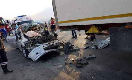 Otomobil tıra çarptı: 2 ölü, 2 yaralı