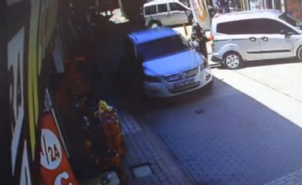 Kütahya'nın Tavşanlı ilçesinde meydana gelen ve bir kişinin yaralandığı trafik kazası görüntüleri güvenlik kamerasına yansıdı.