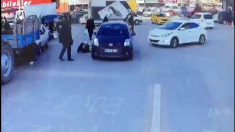 Ankara'da seyir halindeki otomobil yolun karşısına geçmek isteyen dalgın kadına çarptı. Çarpmanın etkisiyle kadın kafa üstü yere düşerken o anlar güvenlik kamerasına yansıdı.