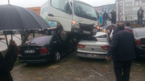 Bursa'da kamyonun arkadan çarpmasıyla kontrolden çıkan kamyonet, 3 lise öğrencisinin daldı ve 2 otomobilin aracın üzerine uçtu.
