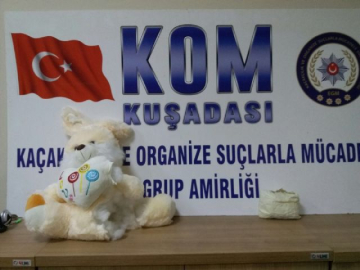 Aydın'ın Kuşadası ilçesinde polisin durdurduğu bir yolcu otobüsünde, oyuncak tavşan içinde 293 gram uyuşturucu madde metamfetamin ele geçirildi. Polis olayla ilgili 2 kişiyi gözaltına aldı.