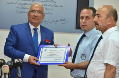 Mersin'de kullandığı otobüste unutulan para dolu çantayı sahibine teslim ederek örnek bir davranış sergileyen şoför Emrah Gültekin, Büyükşehir Belediye Başkanı Burhanettin Kocamaz tarafından teşekkür belgesi ve para ile ödüllendirildi.