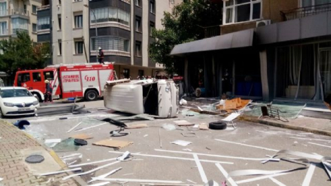 İstanbul Maltepe'de deterjan üretimi yapan bir iş yerinde meydana gelen şiddetli patlamada 1 kişi ağır yaralandı. Patlamanın şiddetiyle yoldaki bir araç devrildi, dükkan duvarları yıkıldı.