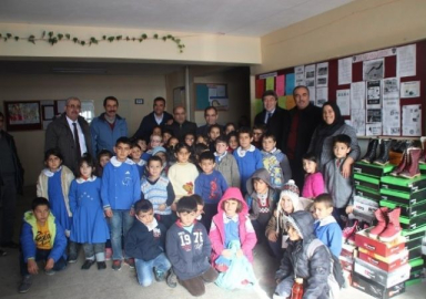 Pınarbaşı Belediye Başkanı Dursun Ataş, Pınarbaşı merkez ve mahallelerinde bulunan ilkokul ve ortaokul öğrencilerine 2 bin adet kışlık bot dağıttı.
