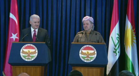 Başbakan Binali Yıldırım, Irak'a düzenlediği ziyaret kapsamında Bağdat'taki temaslarını tamamlayarak Erbil'e geçti. Başbakan Yıldırım, Erbil'de Irak Kürt Bölgesel Yönetimi Başkanı Mesud Barzani ile gerçekleştirdiği baş başa görüşmenin ardından ortak basın toplantısı düzenledi. Erbil'de bulunmaktan memnuniyet duyduğunu ifade ederek konuşmasına başlayan Yıldırım, "Zatıalinizin 23-24 Ağustos'ta ülkemizi 15 Temmuz darbe girişimi sonrası ziyaretiniz çok önemliydi. O ziyaretle 15 Temmuz darbe girişiminde bulunan FETÖ'ye karşı çok net ve anlamlı bir duruş sergilediniz. Gazi Meclisimizi ziyaret ettiniz. Türk milleti ile dayanışmanızı gösterdiniz. Bunun için çok teşekkür ediyoruz" dedi.