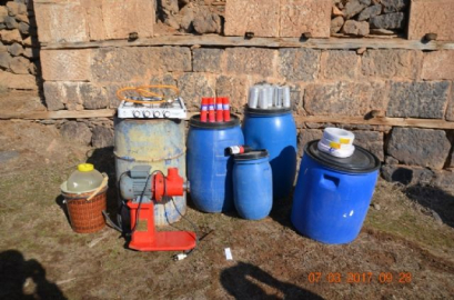 Operasyon kapsamında metruk bir binada yapılan aramada amonyum nitratı EYP yapımında kullanılabilir hale getirmede kullanılan makine, 300 metre elektrik kablosu, 4 adet 200 litrelik EYP yerleştirmede kullanılan bidon, 1 adet 80 litrelik varil, 1 adet ocak (4 gözlü), 4 adet çakmak gazı, 10 adet alüminyum folyo, 2 adet plastik kova ele geçirildi.