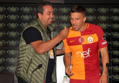 Galatasaray'daki son maçına çıkan Lukas Podolski'ye basın mensupları pasta yaptırdı. Alman futbolcuya üzerinde Galatasaray'a geldiği ilk günün fotoğrafı olan pasta kesildi.