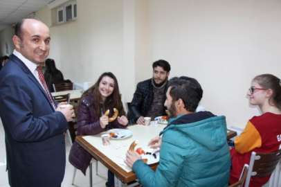 Rektörden finallere hazırlanan öğrencilere çay-simit ikramı