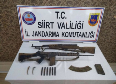 Siirt'te bir mağara içerisinde yapılan aramada, terör örgütü mensuplarına ait silahlar ele geçirildi. Silahların Rusya ve Belçika menşeli olduğu görüldü. Siirt Valiliğinden yapılan açıklamada, 06-07 Aralık 2017 günü Jandarma Özel Harekat (JÖH) birliklerinin katılımıyla icra edilen 'Şehit Jandarma Üsteğmen Ersan Yenice-03' operasyonu kapsamında yapılan arazi araması sırasında terör örgütü mensuplarınca kullanıldığı değerlendirilen bir mağara tespit edildi. Mağarada yapılan aramada Rusya menşeili SKS model tüfek, Belçika menşeili FN-FAL (G) model tüfek, 2 adet şarjör, 25 adet 7,62x54 milimetre çapında fişek ele geçirildi. Ele geçirilen malzemeler ile ilgili adli tahkikat başlatıldığı belirtildi. (Mehmet Niyazi Deniz /İHA)