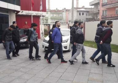 Balıkesir Asayiş Şube Müdürlüğü ekipleri dolandırıcılık olayları üzerinde yaptığı operasyon ile 5 kişiyi gözaltına aldı. Şüphelilerin daha önceden yaşanan çeşitli dolandırıcılık olaylarında kendilerini polis olarak tanıtarak vatandaşları binlerce lira dolandırdığı ortaya çıktı. Son olarak Karesi ilçesinde 2 ayrı vatandaşı 100 bin TL'ye yakın dolandıran şüpheliler Dolandırıcılık Büro Amirliği ekiplerince yakalandı. Asayiş Şube Müdürlüğü'ne götürülerek sorguları yapılan 5 şüpheli, çıkarıldıkları adli makamlarca tutuklanarak cezaevine gönderildi.
